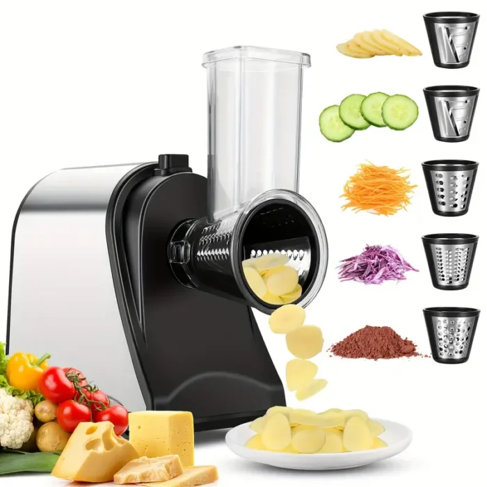 With this multifunctional vegetable slicer, you can process a variety of ingredients. Free your hands and make your life more comfortable! Features: – 250W motor for quick ingredient chopping – 5 different stainless steel blades can be replaced at any time – One-button operation for quick and easy use – Easy to install and removable for cleaning – Suitable for cutting a wide range of vegetables and fruits.