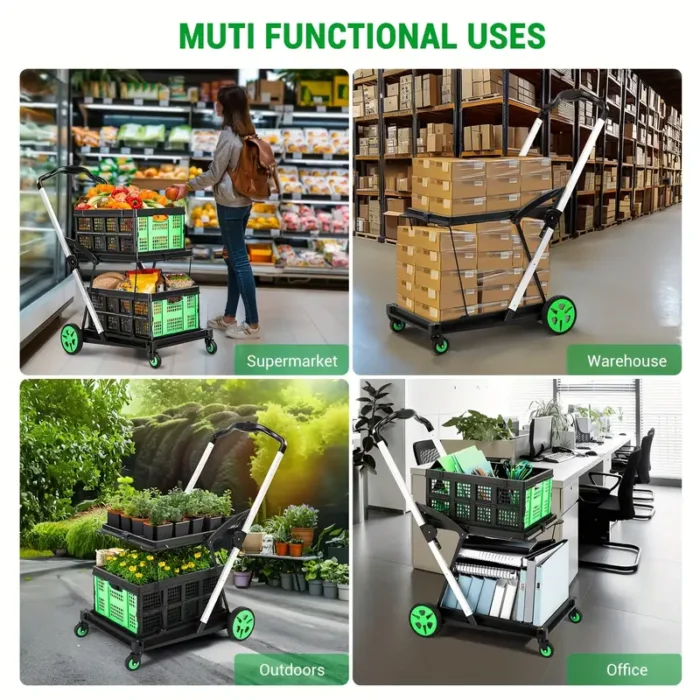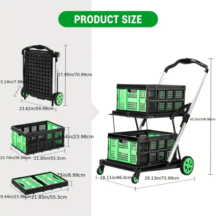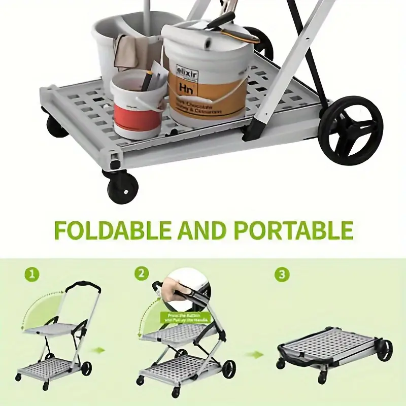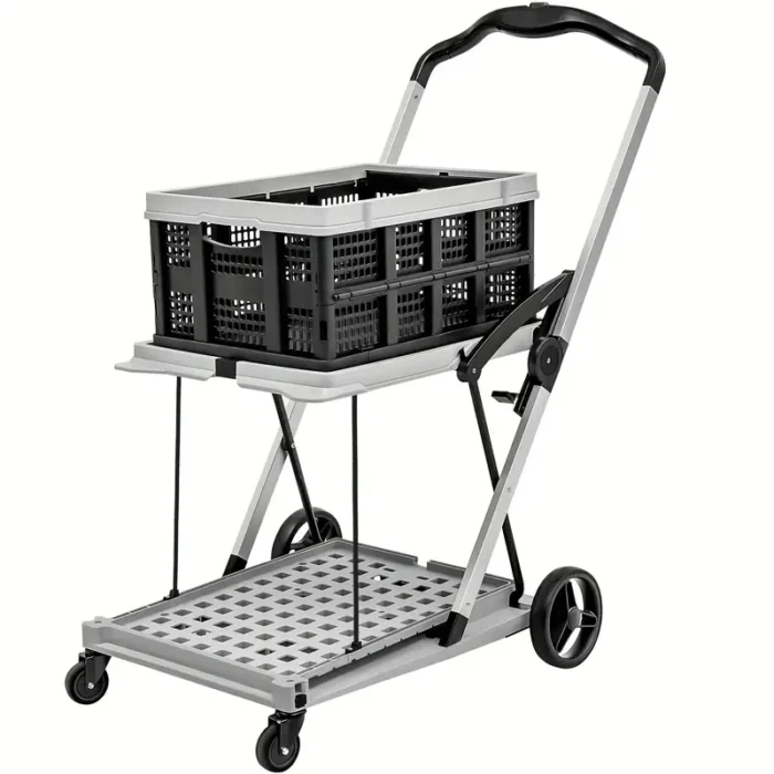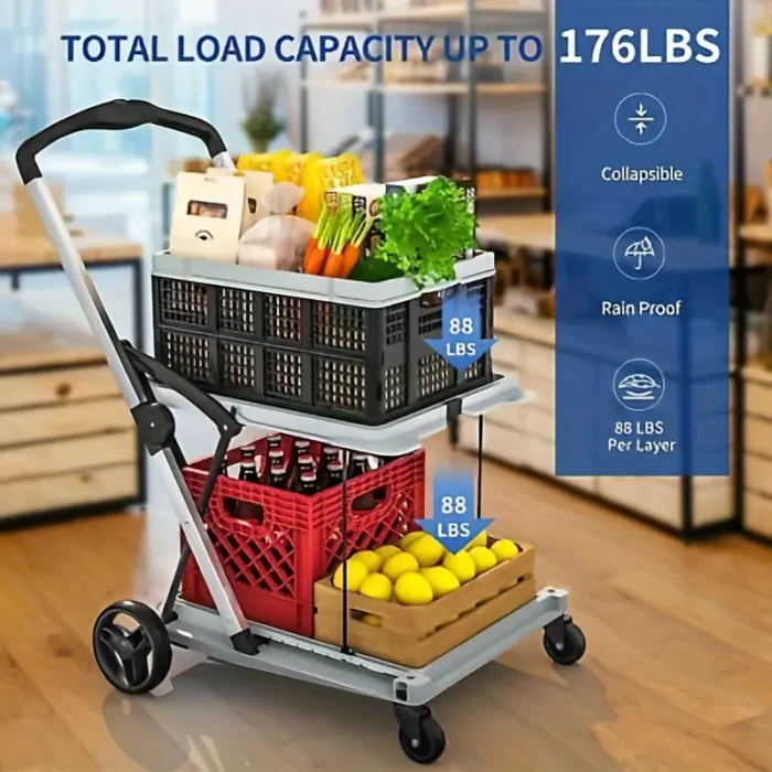 411 reviews for 2-Tier Folding Shopping Cart Portable Utility Cart with 1 Storage Box, Rubber Wheels, 198 lbs Weight Capacity, with 360° Swivel Wheels