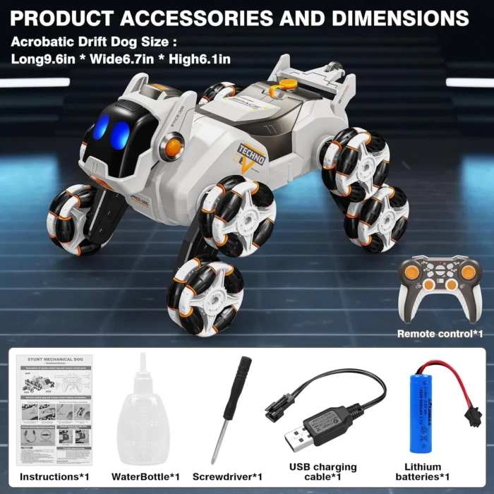 Indoor and Outdoor Fun: The remote control car is equipped with a wireless remote control, allowing children to have fun and enjoy the joy of driving the robot dog remote control car indoors and outdoors.
